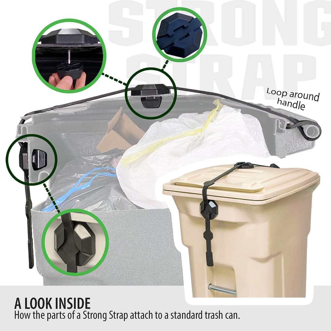 Step 1: Loop the Strong Strap around the handle of your trash can.